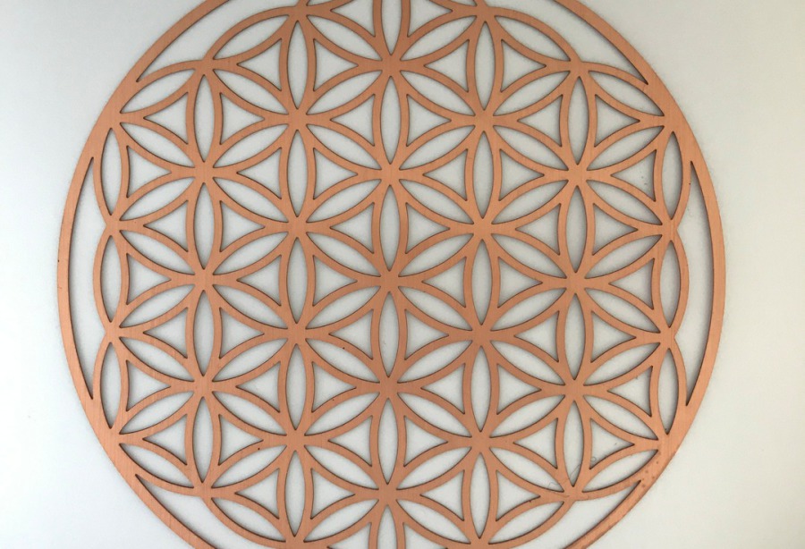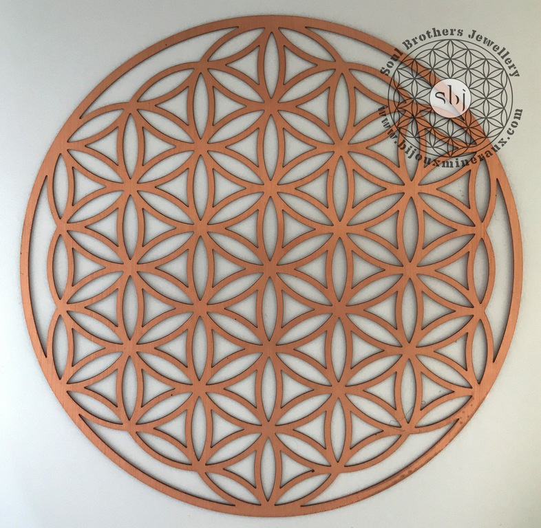 la Fleur de Vie est un symbole sacré dans de nombreuses traditions . On y retrouve les constructions de l’univers ainsi que les formes de platon le tétraèdre, l’hexaèdre ou cube, l’octaèdre, le dodécaèdre et l’icosaèdre. C'est une métaphore pour illustrer la connexion de toute manifestation de la vie et de l’esprit dans l’univers. Constitué de dix-neuf cercles entrecroisés et inscrits à l’intérieur d’une sphère.