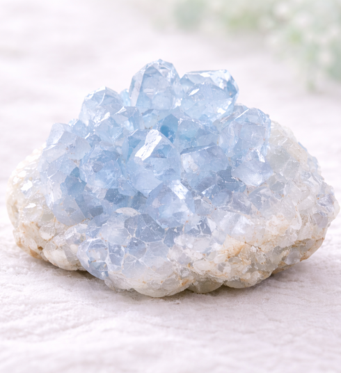 Dans une approche de bien-être, la célestite est utilisée comme pierre d’accompagnement, favorisant l’apaisement du mental, la tranquillité émotionnelle et une atmosphère propice au repos et à la