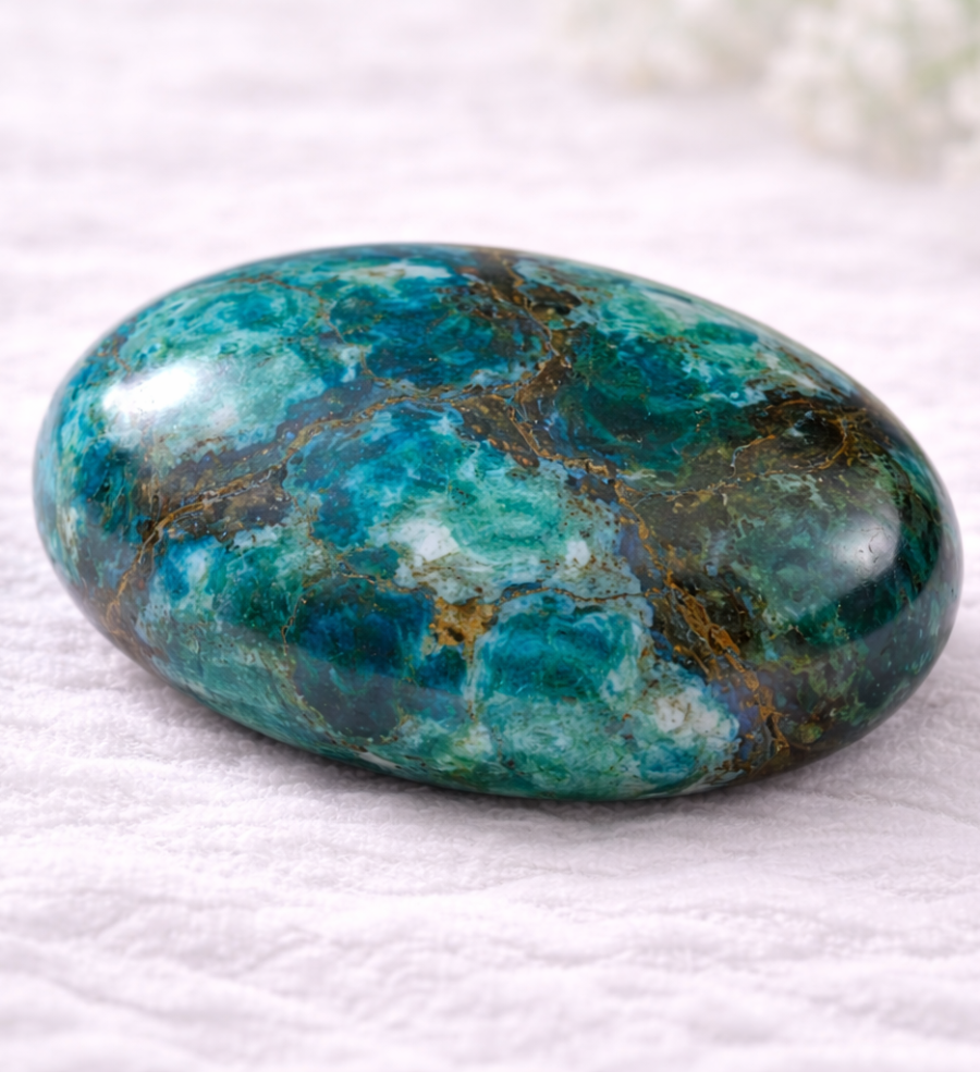 Dans les traditions liées aux pierres naturelles, la chrysocolle est associée à des intentions de paix intérieure, de vérité et de fluidité