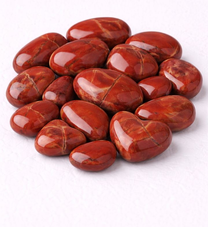 Dans une approche de bien-être, le jaspe rouge est utilisé comme pierre d’accompagnement, favorisant la solidité intérieure, l’endurance et une présence affirmée dans le corps et dans