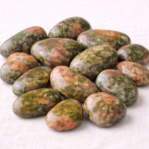 Le jaspe unakite est utilisé comme support de bien-être et d’accompagnement personnel.
