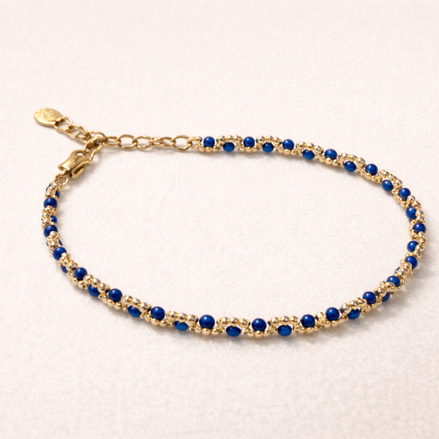 Le lapis-lazuli est une pierre naturelle d’un bleu profond, souvent parsemée d’inclusions dorées de pyrite et parfois de veines blanches de calcite. Utilisé depuis l’Antiquité, il est
